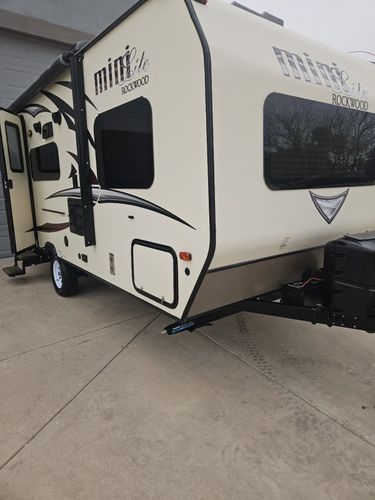 Please come see an amazing well kept Rockwood 1909S 19 ft travel trailer. All works and needs nothing. Inside outside speakers, power awning, TV, pop out living, memory foam mattress, solar system to auto charge batteries. Ready to hook up and go for the week anywhere you wish. Light weight for easy towing