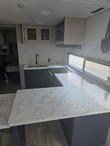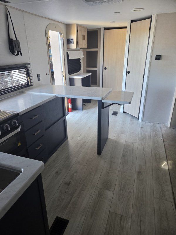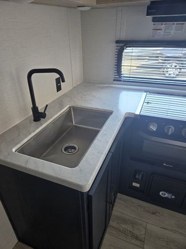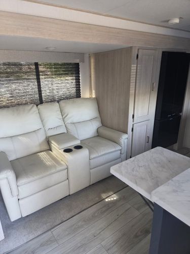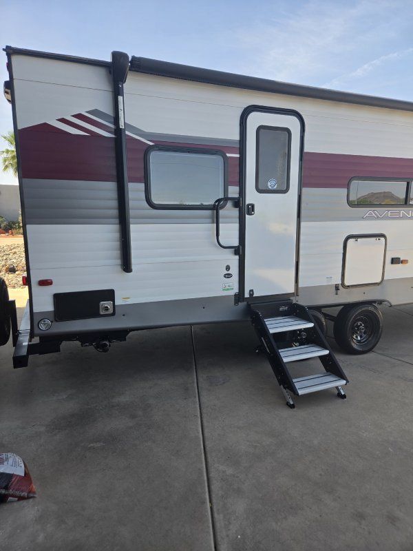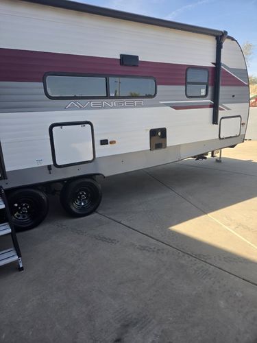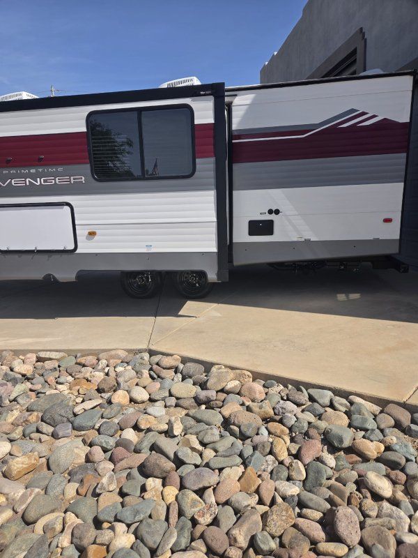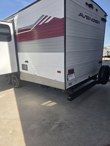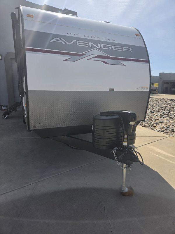 Imagine the perfect blend of comfort and style outdoor living with the 2026 Prime Time Avenger 25MKO. This travel trailer is your ideal escape, offering a spacious and inviting layout that ensures every journey feels like a retreat. With its thoughtful design, the Avenger 25MKO features a center kitchen and living area that invites you to unwind and enjoy your surroundings. The theater seating provides a cozy spot to relax and watch your favorite shows on the 50" TV, while the full-size electric refrigerator and three-burner cooktop make meal prep a breeze. As you make your way to the front, you'll find a serene bedroom complete with a queen bed, promising restful nights after days of adventure. The rear bath offers convenience with its plastic/glass shower enclosure and practical storage solutions. Outside, the powered retractable awning extends your living space, providing shade and comfort for outdoor relaxation. With a length of just under 30 feet and a manageable dry weight, the Avenger 25MKO is perfect for those seeking both mobility and luxury in their travels.